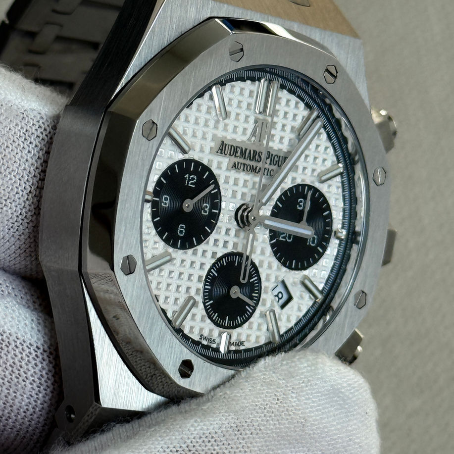 Audemars Piguet Royal Oak 41 мм — это не просто часы, а символ целой эпохи в истории haute horlogerie. Представленный в 1972 году как первый люксовый спортивный хронограф. Версия с диаметром 41 мм — современная интерпретация легендарной классики, сочетающая утончённую механику и архитектурную эстетику.
