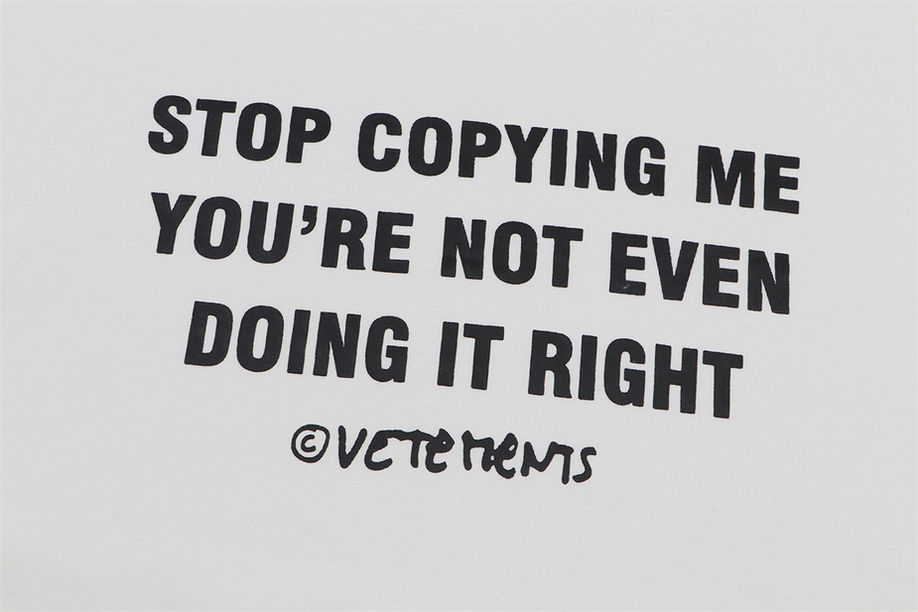 Оверсайз футболка "Stop copying me" от Vetements - это не просто предмет одежды, это яркое выражение стиля и индивидуальности. Созданная для тех, кто ценит оригинальность и хочет выделиться из толпы, эта футболка станет настоящим акцентом вашего образа. А надпись "Stop copying me" придает футболке игривость и юмор, а также делает ваше заявление о самостоятельности и оригинальности.