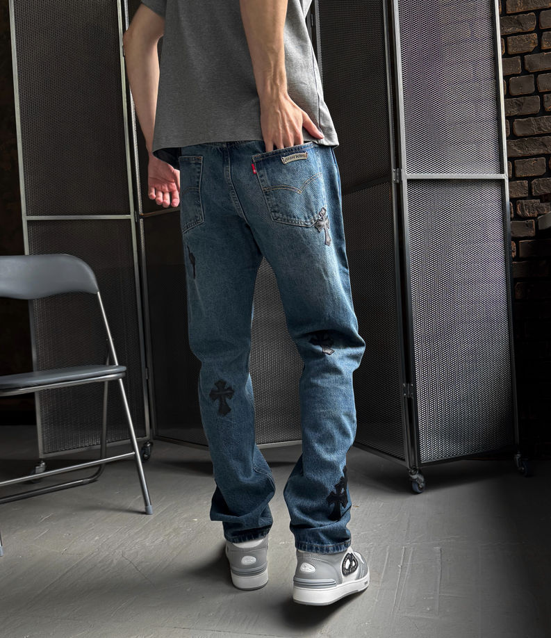Джинси Chrome Hearts — це втілення розкоші, індивідуальності та майстерності, які перетворюють звичайний денім на витвір мистецтва. Виготовлені вручну в Лос-Анджелесі, ці джинси стали символом статусу серед модних ікон та знаменитостей.