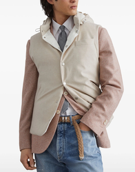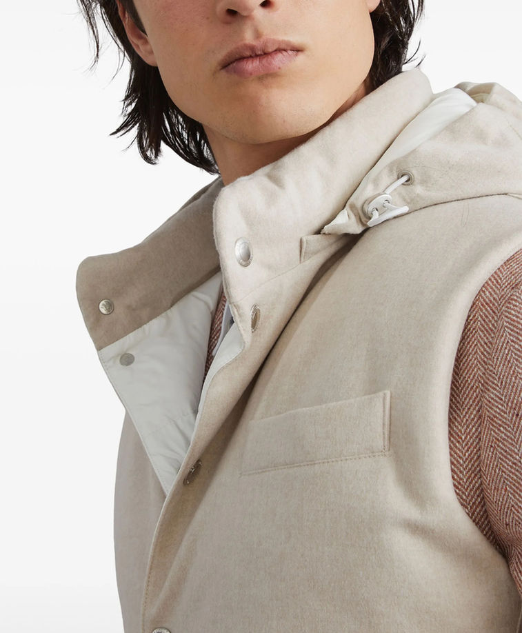 Лаконічний дизайн, характерний для стилістики quiet luxury, робить жилетку універсальною: вона гармонійно поєднується як із класичними образами, так і з більш повсякденними луками. Витончене оздоблення та фірмові деталі Brunello Cucinelli підкреслюють її статусність та вишуканість.