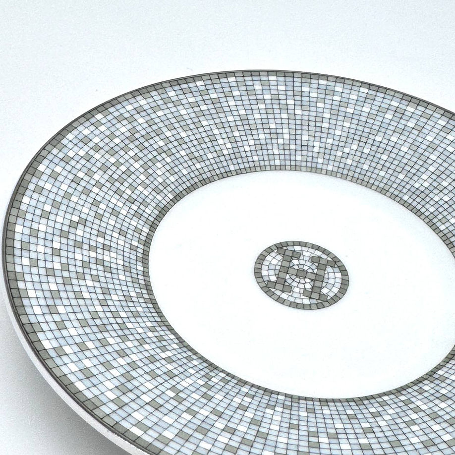 Кавова чашка з блюдцем Hermès Mosaique au 24 Platinum — це витончений і елегантний предмет посуду.Кожен елемент цієї чашки створений для того, щоб додати вишуканості і елегантності кожному моменту вашого дня. Чашка і блюдце прикрашені витонченим платиновим мозаїчним орнаментом, що нагадує класичні античні мозаїки. Цей орнамент додає чашці і блюдцю відчуття розкоші і бездоганної елегантності.