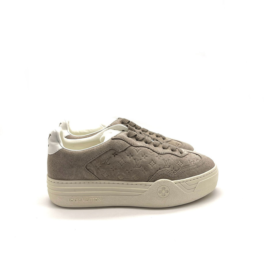 Кроссовки Louis Vuitton Groovy в сером цвете - это стильный и комфортный выбор для повседневного использования. Они отличаются высоким качеством материалов и характерным дизайном бренда Louis Vuitton. Изготовленные из прочной кожи и замши, кроссовки обеспечивают комфорт и долговечность при носке. Белый цвет делает их универсальными и легкими в сочетании с различными нарядами, а также придает им элегантный и стильный вид. Кроссовки Louis Vuitton Groovy в сером цвете идеально подойдут для повседневного использования, а также для создания стильного образа на особые случаи.