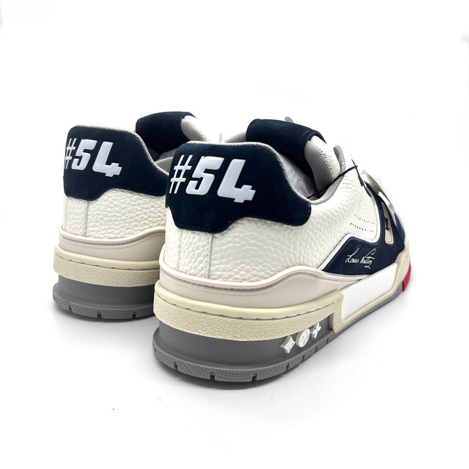 Louis Vuitton Trainer - это модель кроссовок от французского дома моды Louis Vuitton. Кроссовки имеют уникальный дизайн и высокое качество, что делает их популярными среди модных ценителей. Кроссовки Louis Vuitton Trainer в сине-белом цвете - это стильный и комфортный выбор для любителей модной обуви. Мягкая подкладка и стелька обеспечивают комфорт при ношении, а подошва из резины обеспечивает отличное сцепление с поверхностью и долговечность. Отличный выбор для повседневной носки или для создания стильного образа.
