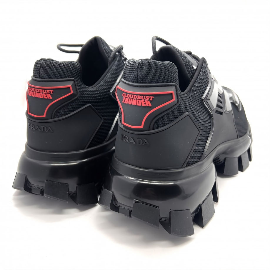 Кроссовки Cloudbust Thunder от Prada - это шикарный выбор для тех, кто ценит комфорт и стиль. Изготовленные из качественной кожи, они обеспечивают отличную поддержку и удобство при ходьбе. Эти черные кроссовки с яркими контрастными вставками на подошве привлекают внимание и могут стать идеальным дополнением к любому образу. Кроссовки имеют удобную шнуровку и надежную рифленую подошву, что обеспечивает хорошую сцепление с поверхностью. На боковой стороне кроссовок расположен логотип Prada, подчеркивающий брендовую принадлежность.