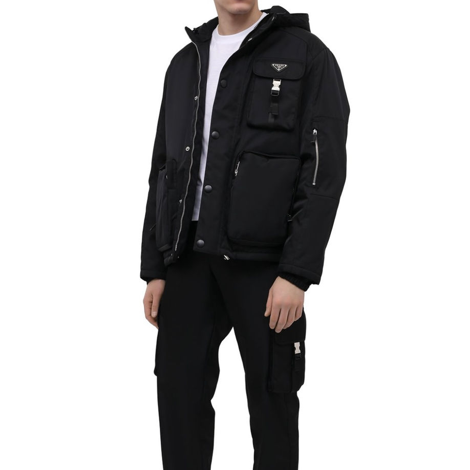 Простой и универсальный крой делает куртку подходящей как для городских прогулок, так и для путешествий. Декоративные элементы, такие как фирменный треугольный логотип Prada, добавляют изысканный акцент, оставаясь при этом сдержанными.