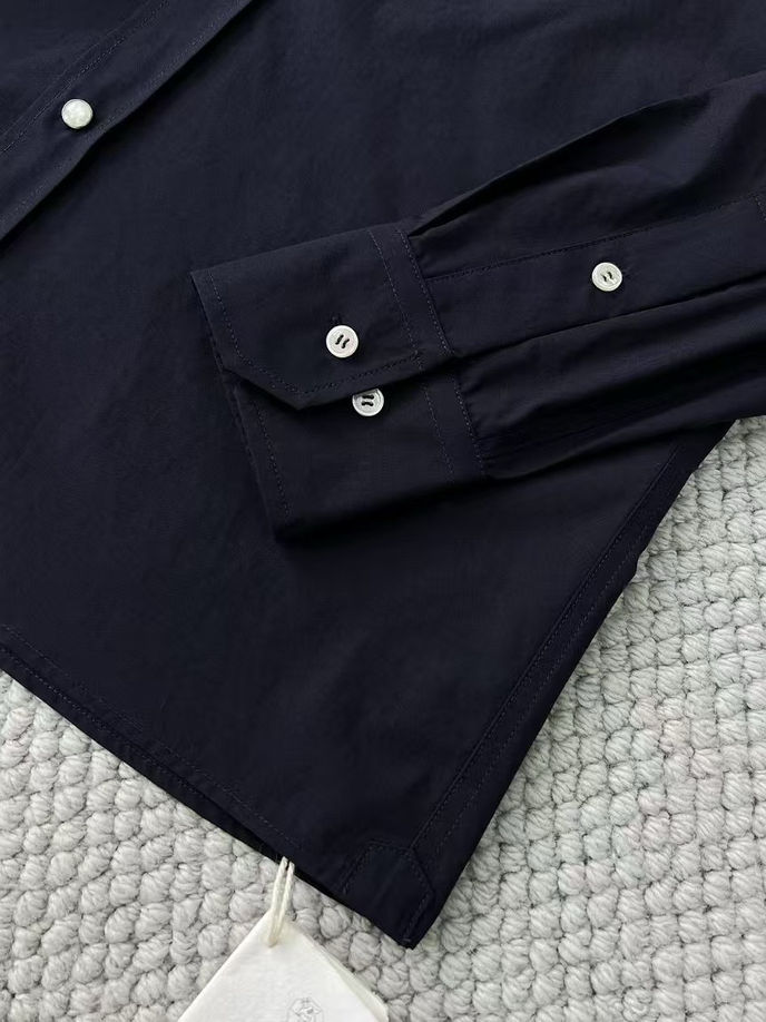Ця сорочка від Brunello Cucinelli поєднує естетику мінімалізму з традиційною італійською майстерністю. Виготовлена з натуральної, дихаючої тканини, вона дарує комфорт протягом усього дня та зберігає ідеальну форму. Акуратний крій, фірмова увага до деталей і нейтральна палітра роблять цю модель універсальною — як для офіційного гардероба, так і для повсякденних образів. Стиль, що не потребує зайвих слів.