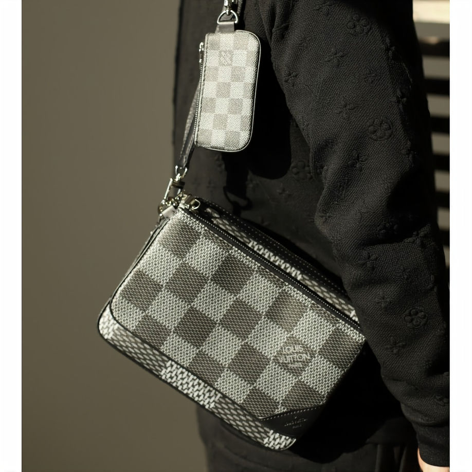 Сумка Louis Vuitton Trio Messenger - это изысканная мужская сумка, созданная для тех, кто ценит стиль, комфорт и практичность. Эта сумка выполнена из качественной ткани Monogram Eclipse, которая дает ей изысканный вид и устойчивость к повреждениям. Сумка имеет три отделения разного размера, каждое из которых закрывается на молнию. Это позволяет организовать хранение вещей и документов, а также легко и быстро найти нужные предметы. Сумка Louis Vuitton Trio Messenger также оснащена регулируемым плечевым ремнем, что позволяет носить ее на любом плече. Стильная и функциональная сумка Louis Vuitton Trio Messenger подходит для различных ситуаций, от деловых встреч до повседневного использования.