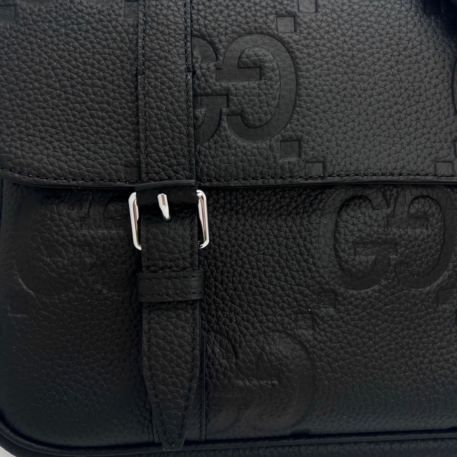 Сумка-мессенджер Gucci с узором Jumbo GG - стильный аксессуар для современного мужчины. Эта сумка изготовлена из высококачественной кожи и украшена знаменитым узором Gucci, который придает ей роскошный вид. Она оснащена регулируемым плечевым ремнем, что делает ее удобной в использовании.