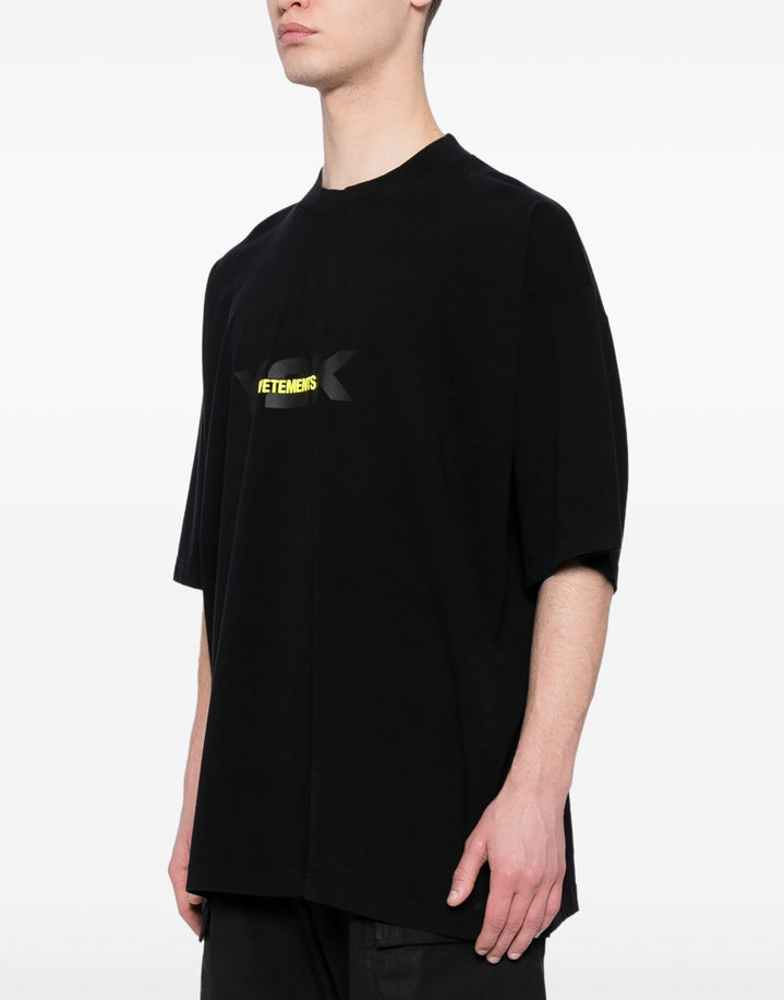 Футболка Vetements черного цвета - это смелый и стильный выбор для тех, кто ценит комфорт и моду в одном флаконе. Изготовленная из мягкого хлопка, футболка обеспечивает комфорт и свободу движения в течение всего дня. Принт спереди придаст вашему образу яркости и индивидуальности. Добавьте немного стиля в свой гардероб с унисекс футболкой.